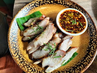 ขาหมูคุโรบุตะทอด (เกรดพรีเมียม) เสริ์ฟกับสัมตำลาว