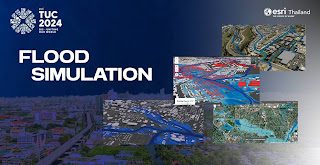 2. GIS Enhances Understanding Changing Climate: จัดการความท้าทายด้านภูมิอากาศด้วย GIS โดยเปิดตัวฟีเจอร์ที่ชื่อว่า Flood Simulation ในซอฟต์แวร์ ArcGIS เป็นครั้งแรกในประเทศไทย ซึ่งออกแบบมาโดยเฉพาะสำหรับจำลองน้ำท่วมที่เกิดจากฝนตก เพื่อมารับมือกับปัญหาน้ำท่วมที่เกิดเป็นประจำทุกปี และทวีความรุนแรงมากขึ้นจากปัญหาโลกร้อน ฟีเจอร์นี้ช่วยให้สามารถคำนวณปริมาณน้ำฝนเป็นมิลลิเมตรเพื่อจำลองสถานการณ์น้ำท่วมได้อย่างแม่นยำ ผ่านการวิเคราะห์แบบ What-if analysis ที่สามารถสร้างสถานการณ์สมมติหลากหลายรูปแบบ อาทิ ข้อมูลระยะเวลาฝนตก ปริมาณน้ำฝน ผนวกเข้ากับข้อมูลเชิงพื้นที่เพื่อให้เห็นถึงผลลัพธ์ของสถานการณ์ต่าง ๆ อันเนื่องมาจากภาวะโลกรวน ให้พร้อมสำหรับการวางแผนรับมือได้อย่างมีประสิทธิภาพและเหมาะสมกับแต่ละพื้นที่ โดยจำลองออกมาในรูปแบบ 3 มิติ ที่เข้าใจได้ง่ายและเห็นภาพรวมได้ชัดเจน